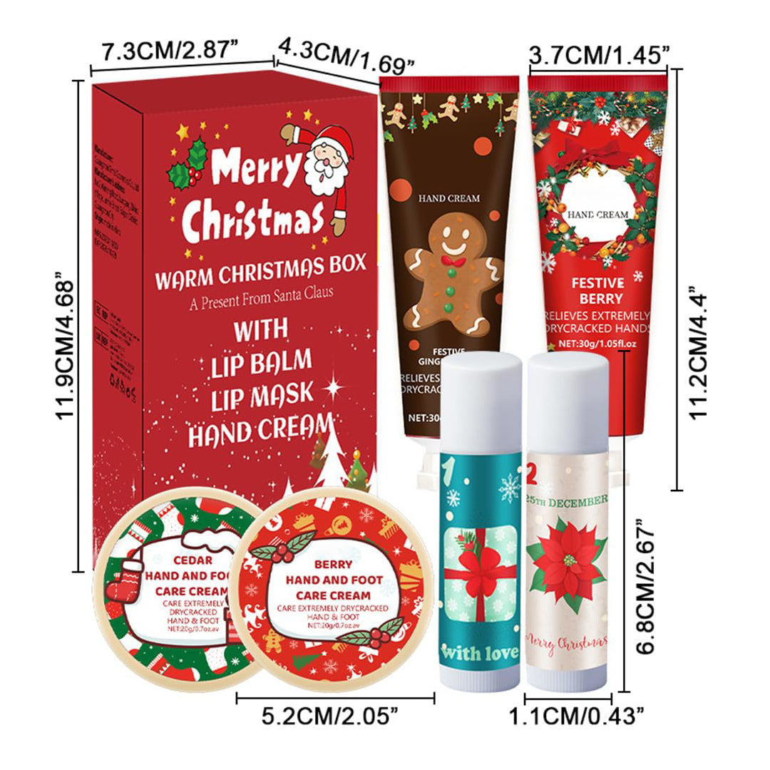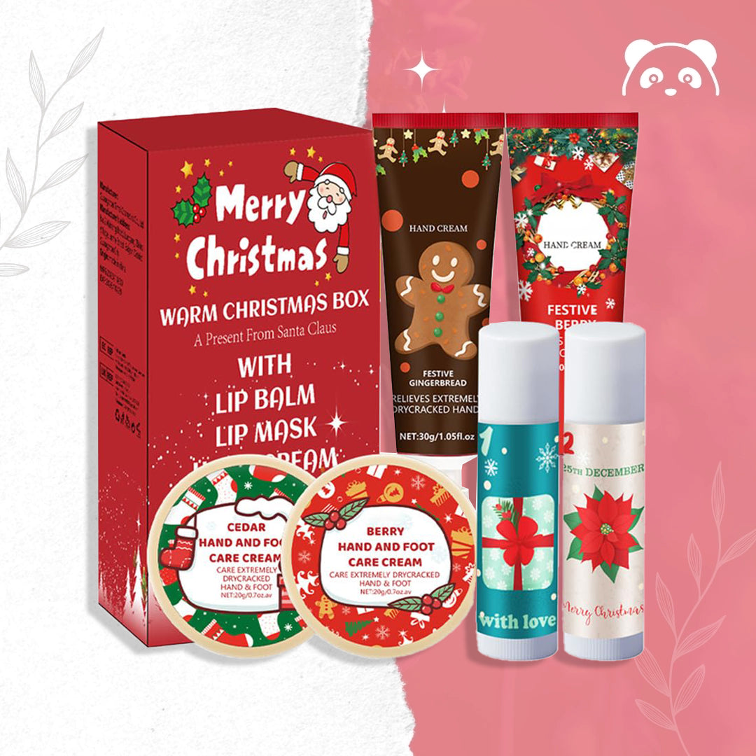 Zestaw świąteczny Warm Christmas Box – balsamy do ust, kremy do rąk i stóp (6 elementów)