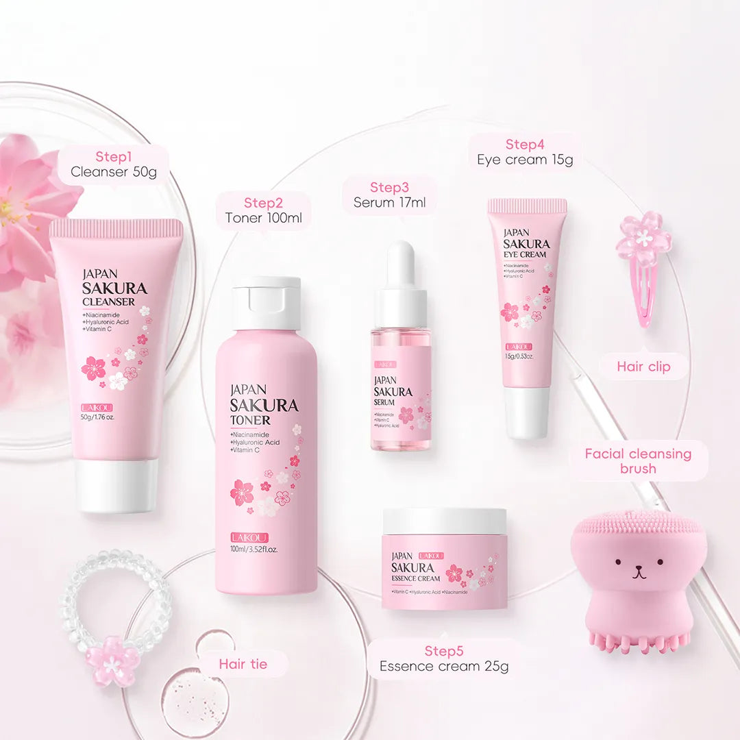 Zestaw pielęgnacyjny Japan Sakura – 8-elementowy komplet do skóry twarzy