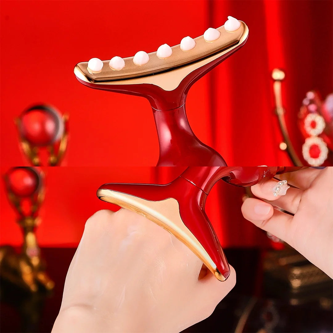 Přístroj přitahuje pozornost svým moderním, luxusním designem v odstínech červené a zlaté. Jeho ergonomický tvar zajišťuje pohodlné používání a díky lehké konstrukci si masážní přístroj můžete vzít kamkoli s sebou.