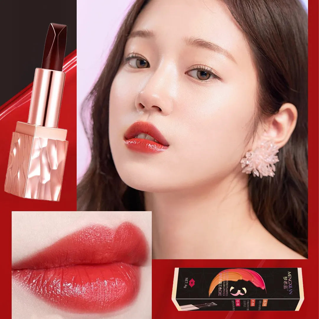 Trójkolorowa pomadka do ust łączy trzy odcienie w jednym produkcie, umożliwiając tworzenie różnych efektów – od pełnego makijażu po delikatne ombre inspirowane trendami pielęgnacji azjatyckiej.