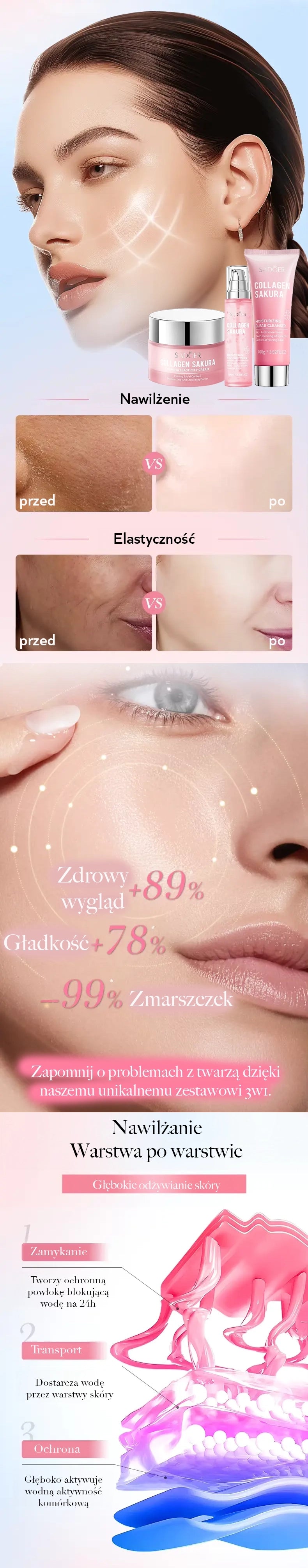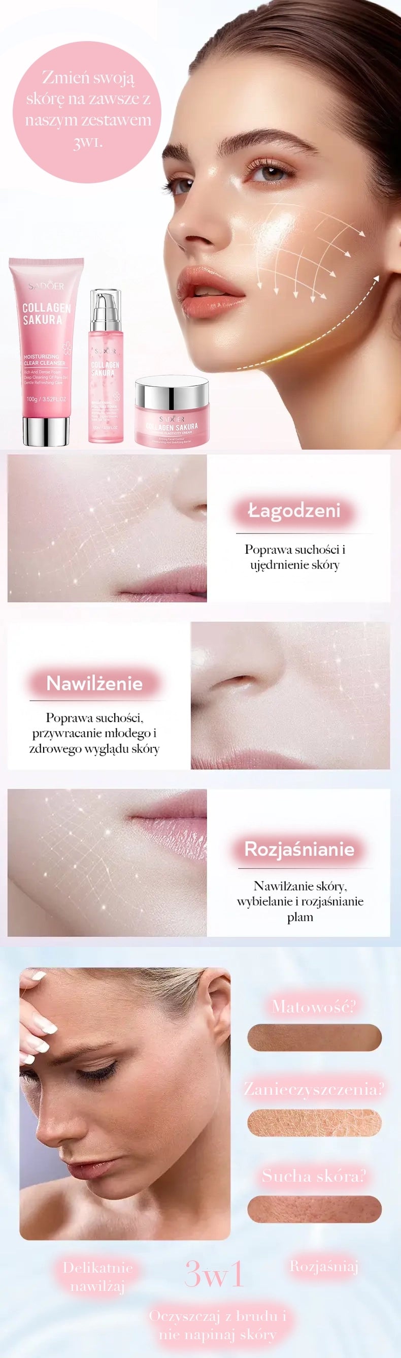 Sada 3w1 Kolagenová sakura pro péči o pleť SADOER