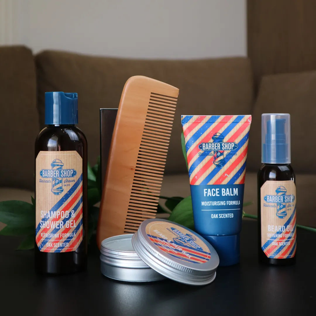 Elegantní sada v holičském stylu, která kombinuje komplexní péči o vousy, obličej a tělo. Perfektní dárek pro každého muže, který oceňuje estetiku, kvalitu a praktické doplňky do své každodenní rutiny.