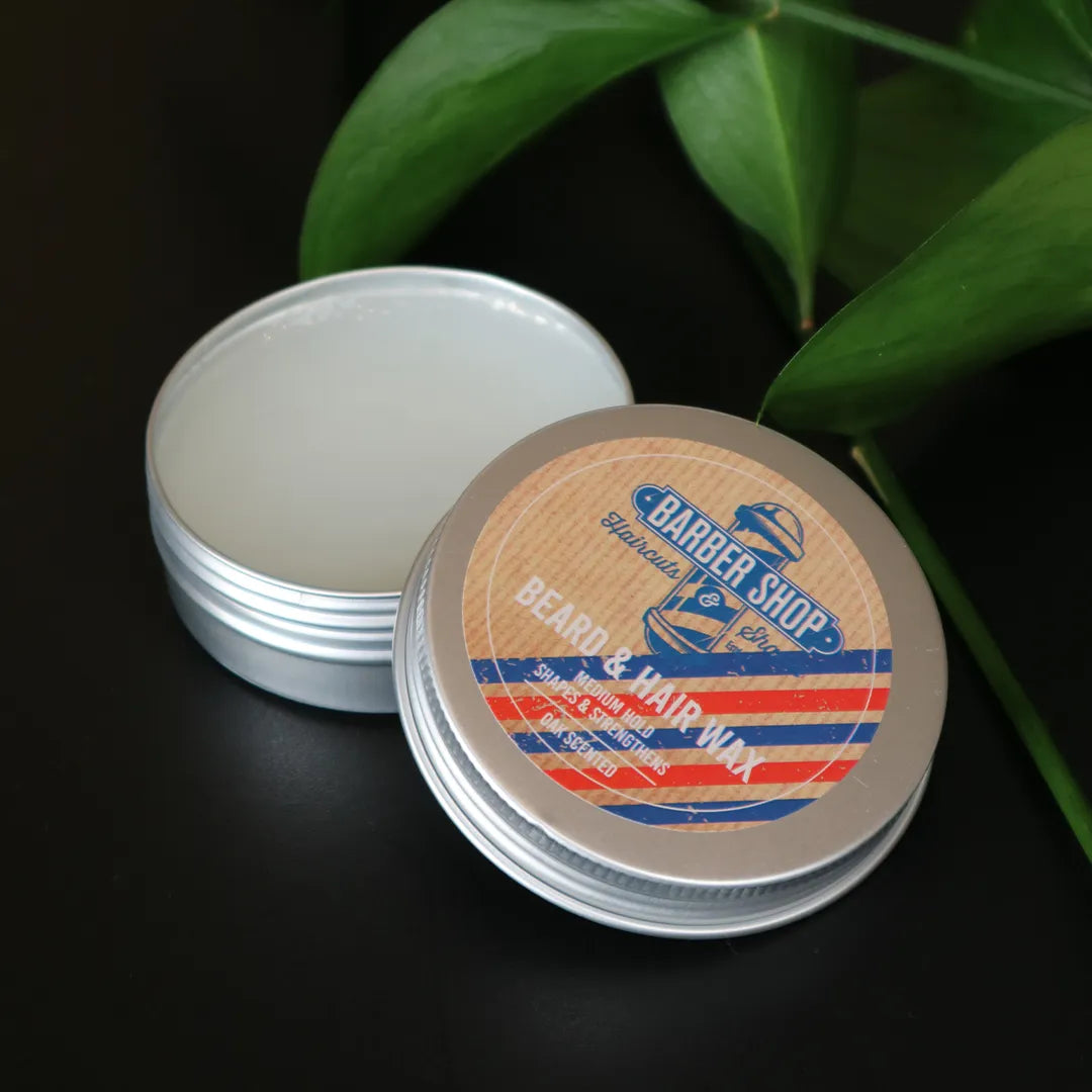 4️⃣ Vosk na vousy a vlasy: zahřejte malé množství v dlaních a vytvarujte.