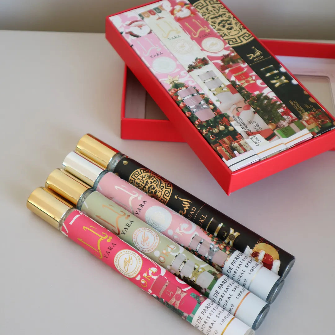 Unikátní vánoční sada čtyř dlouhotrvajících parfémů v elegantní dárkové krabičce.