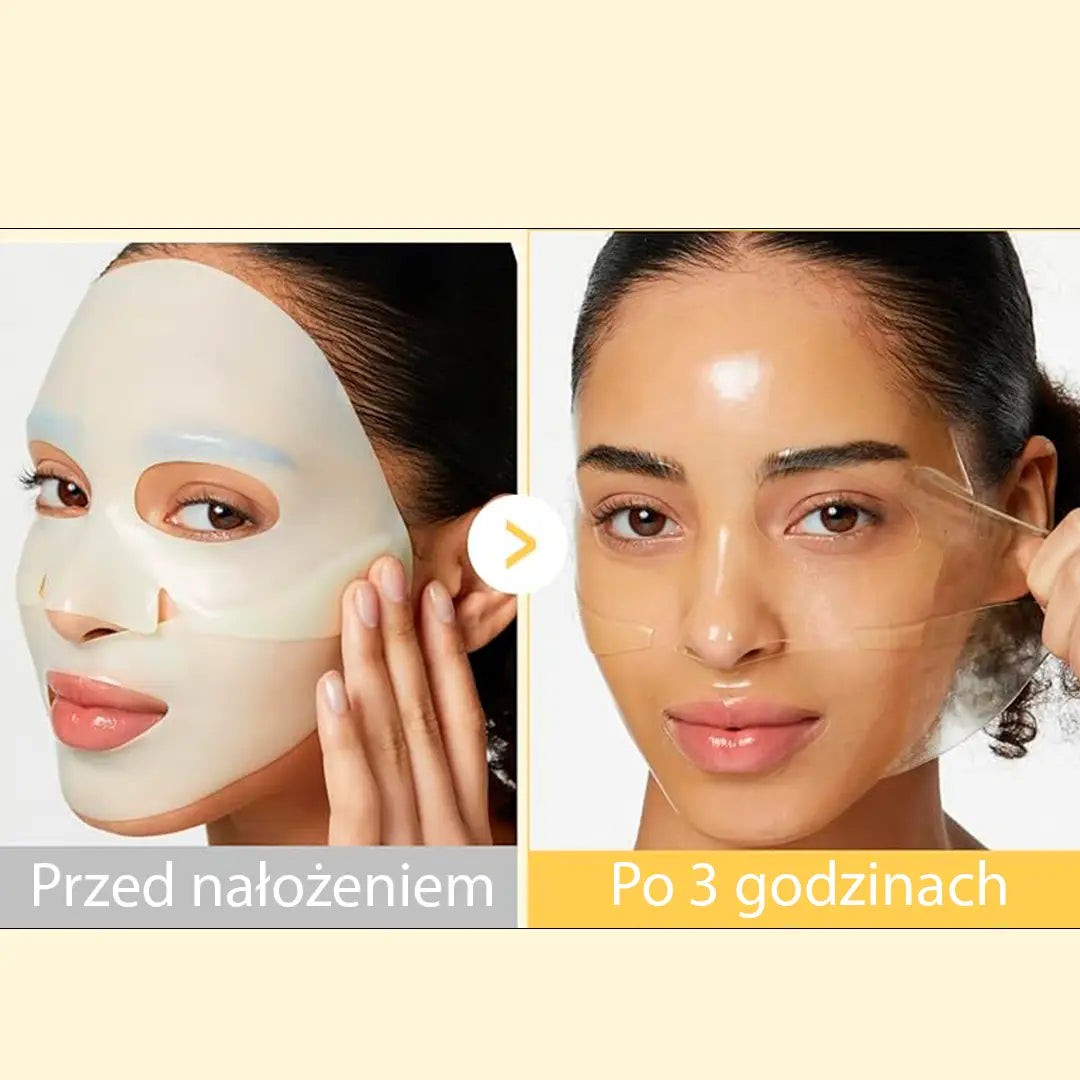 Hydrożelowa struktura ściśle przylega do twarzy, zapobiegając odparowywaniu wilgoci. Dzięki temu skóra pozostaje nawilżona, miękka i sprężysta przez całą dobę.