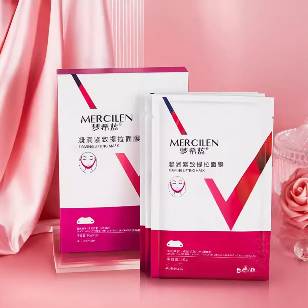 Maska liftingująca V-line Mercilen wspiera ujędrnienie skóry i pomaga poprawić kontur twarzy, zmniejszając widoczność wiotkości w okolicach podbródka.