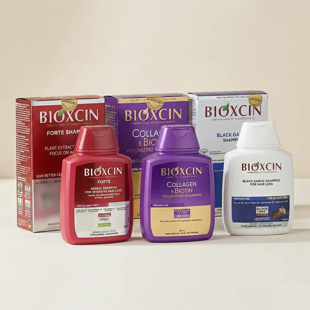 Szampony Bioxcin to ekspercka pielęgnacja prosto z Turcji, oparta na opatentowanym kompleksie ziołowym BioComplex B11. Niezależnie od tego, czy wybierzesz wersję Forte, z Kolagenem czy Czarnym Czosnkiem, każdy produkt skutecznie hamuje wypadanie włosów, wzmacnia cebulki i przywraca zdrowy wygląd skóry głowy. Formuła bez parabenów i ftalanów jest bezpieczna do codziennego stosowania.