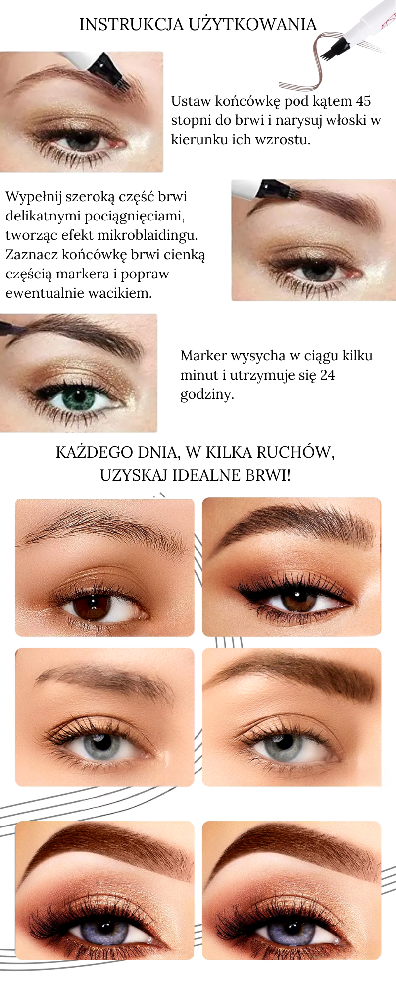 The marker contains only natural ingredients, making it safe and non-allergenic. It doesn't dry out the skin or interfere with natural eyebrow growth.