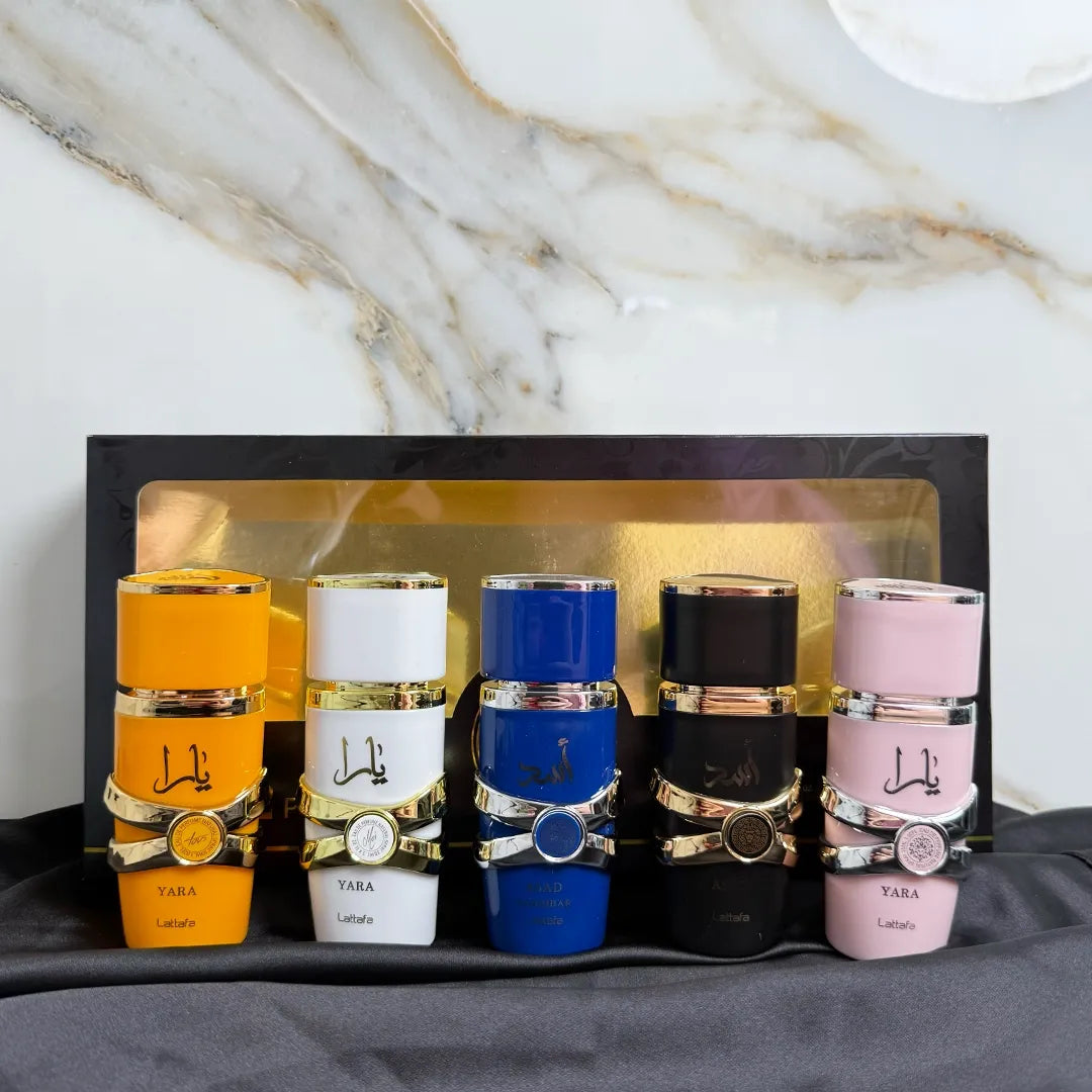 Product type : perfume set (3 women's Yara, 2 men's Asad)