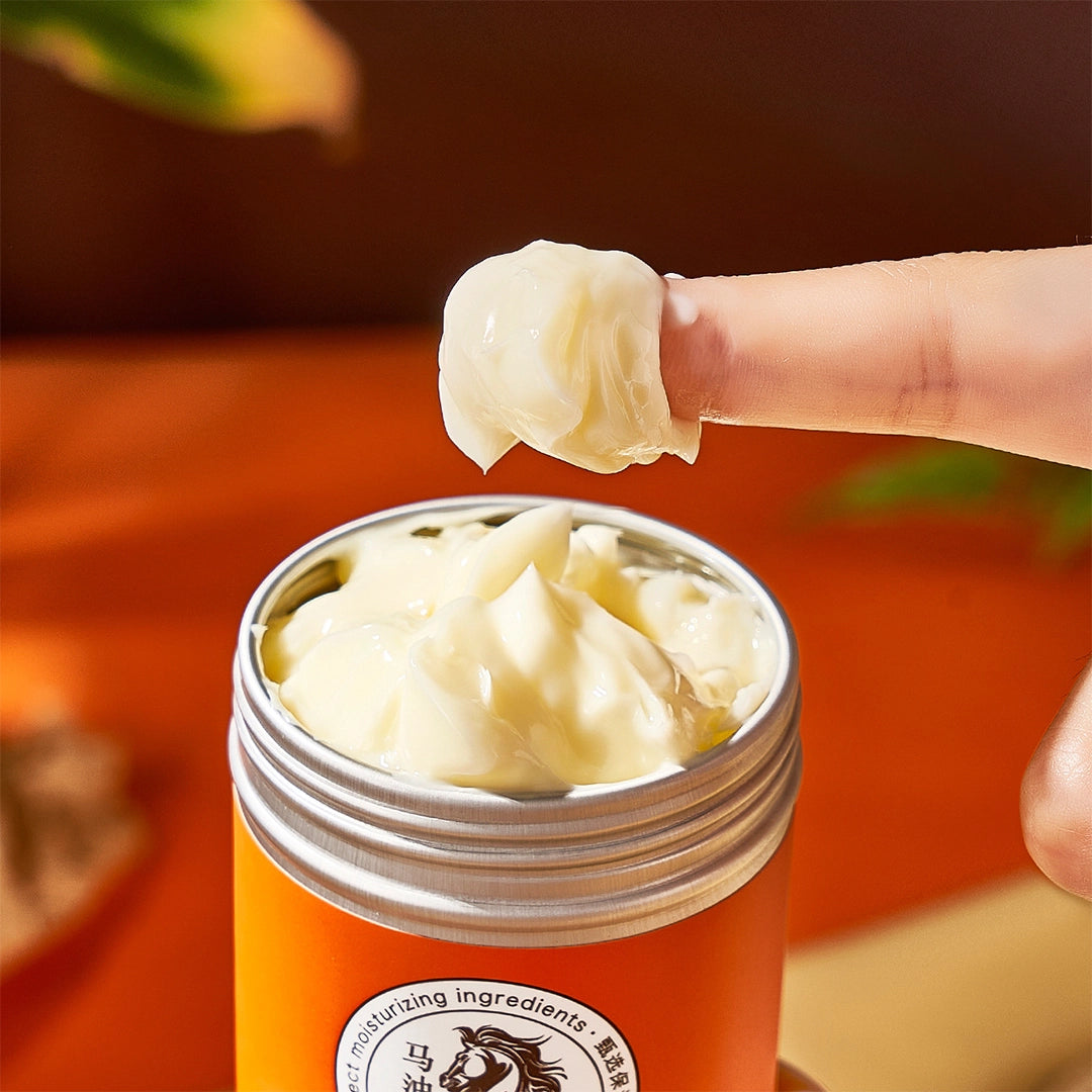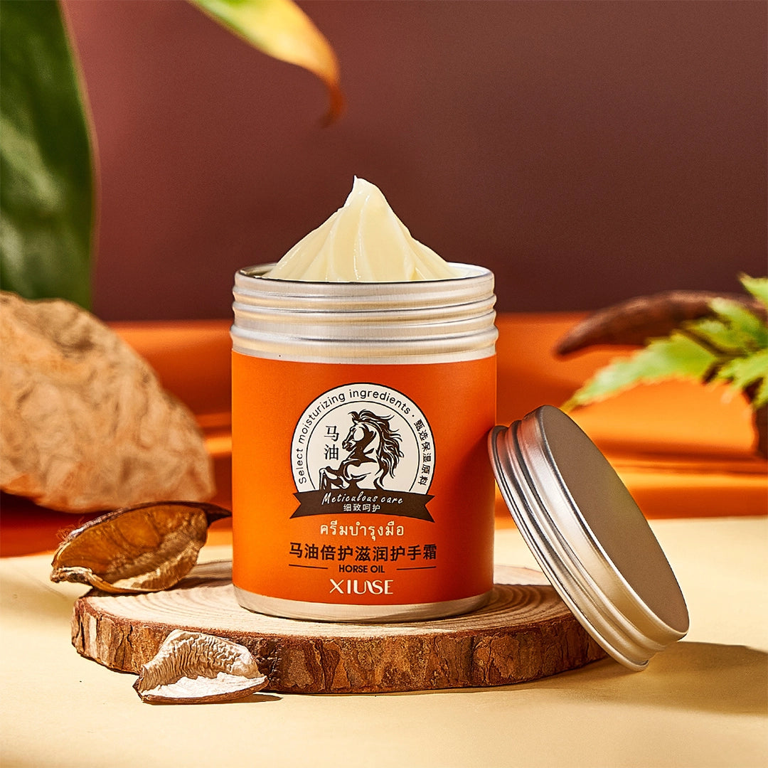 Gęsty, kojący krem z olejem końskim szybko zmiękcza szorstką skórę, wygładza i przywraca dłoniom elastyczność. Tworzy delikatną warstwę ochronną, a jednocześnie nie zostawia lepkiego filmu.