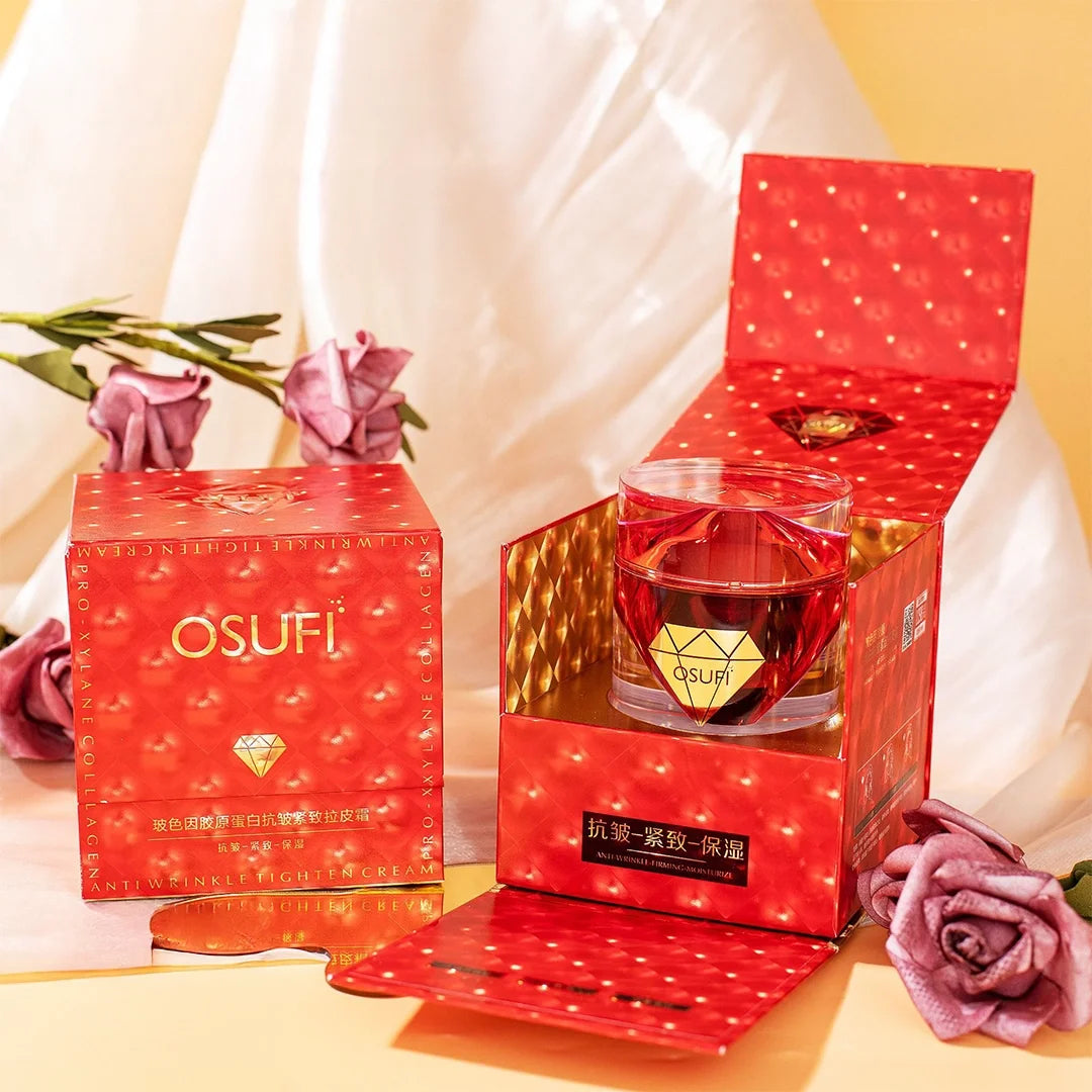OSUFI Pro-Xylane Collagen to luksusowy krem, który łączy kolagen z Pro-Xylane, aby widocznie ujędrnić skórę, zredukować zmarszczki i zapewnić długotrwałe nawilżenie. Rubinowy słoiczek w stylu „diamentu” podkreśla premium-charakter produktu i świetnie sprawdzi się na prezent.