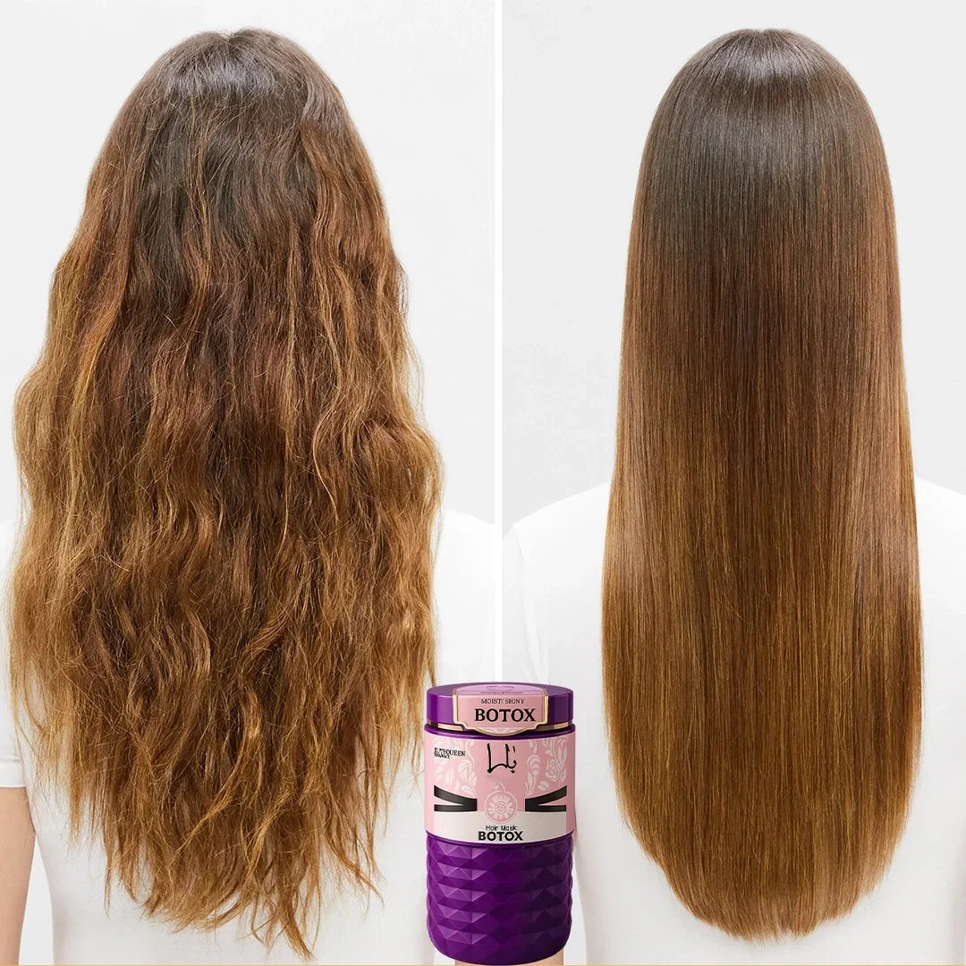 Efekt „botoxu” do włosów wygładza szorstkie pasma, ułatwia rozczesywanie i redukuje puszenie. Włosy stają się miękkie, sprężyste i zyskują zdrowy, lustrzany blask bez obciążenia.