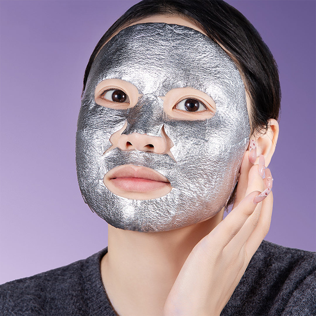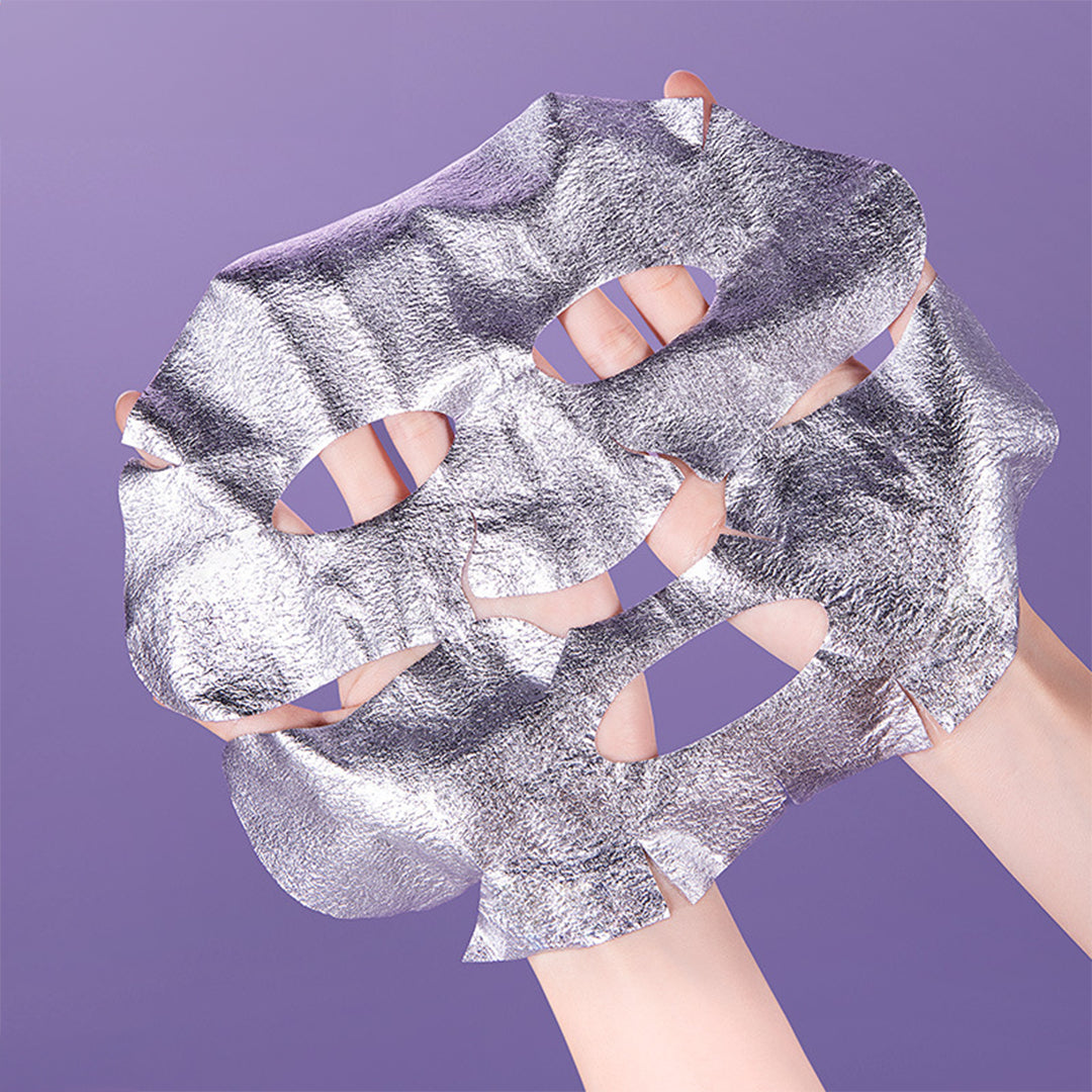 Metaliczna powłoka maski działa jak bariera okluzyjna, zatrzymując ciepło skóry i zwiększając skuteczność składników aktywnych. Dzięki temu kolagen i kwas hialuronowy wnikają głębiej, zapewniając efekt wygładzenia i intensywnej regeneracji. Po zastosowaniu skóra staje się elastyczna, jędrna i wyraźnie odmłodzona.