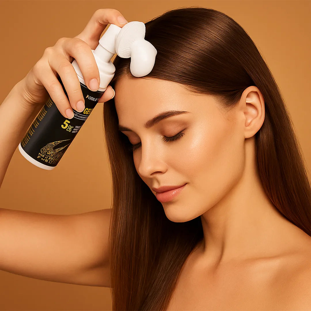 Nowoczesna pianka oczyszczająca do skóry głowy z 5% minoksydylem i biotyną, która usuwa sebum, zanieczyszczenia i resztki kosmetyków, odblokowując pory i przygotowując skórę do przyjęcia składników aktywnych. Zintegrowana silikonowa szczoteczka delikatnie masuje i pobudza mikrokrążenie, wspomagając zdrowy wzrost włosów.