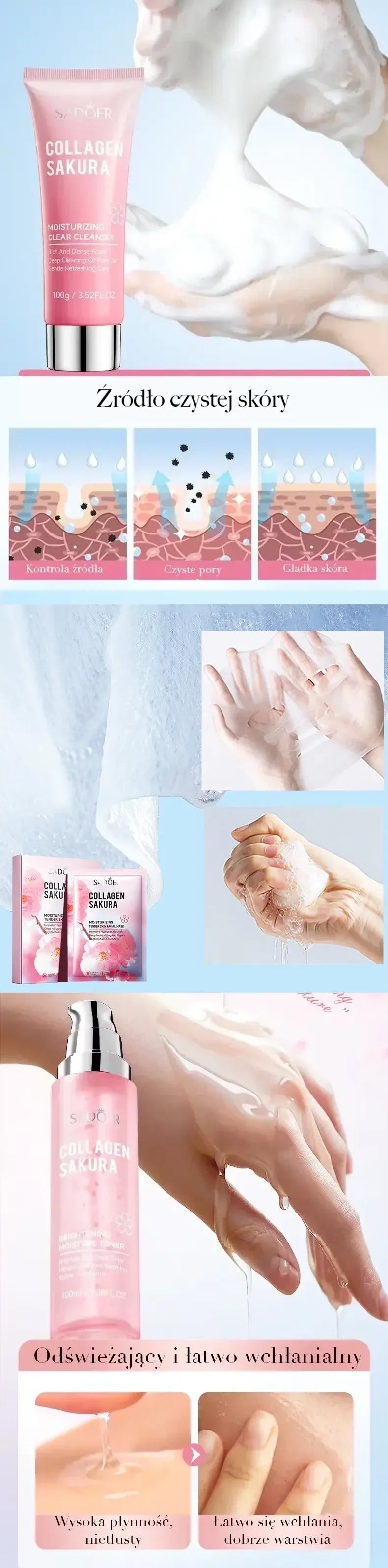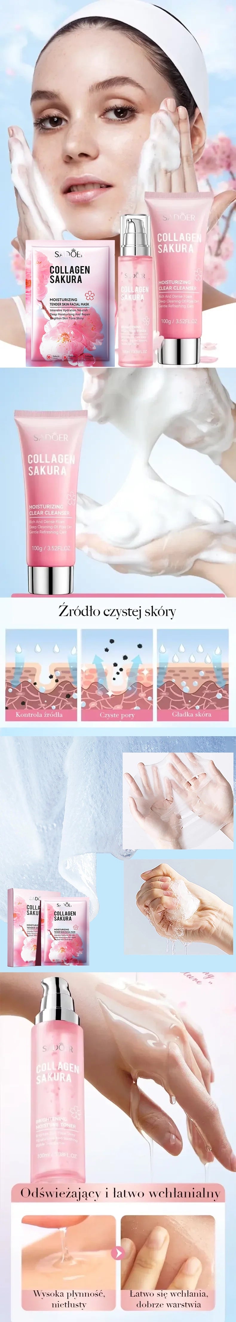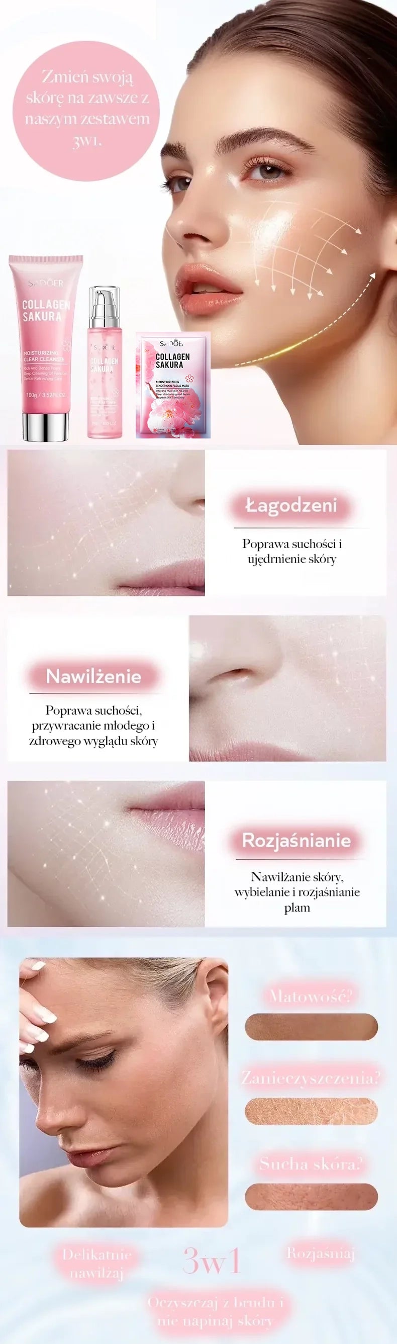 Zestaw 3w1 Collagen Sakura do Pielęgnacji Skóry SADOER