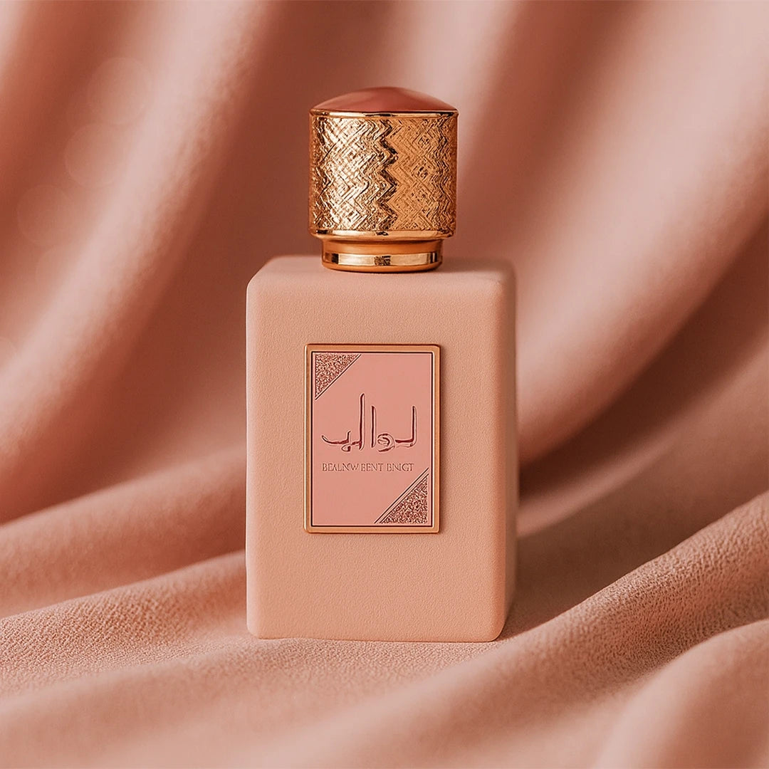 Flakon pudrowy (róż/beż): głowa — bergamotka; serce — róża, jaśmin; baza — wanilia, piżmo.