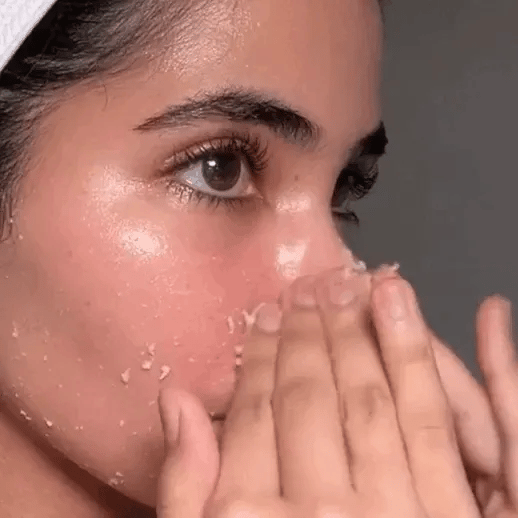 3️⃣ Masuj kolistymi ruchami, aż pojawią się drobne „rolki” złuszczonego naskórka